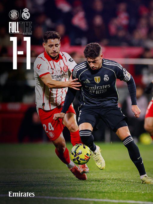 北京时间12月1日04:00,西甲联赛第14轮,皇家马德里客场挑战赫罗纳。上半场,姆巴佩打进一球,但是被判罚越位在先,随后奥纳西破门首开纪录。皇马半场0-1落后赫罗纳。下半场,姆巴佩点射扳平。最终皇马1-1战平赫罗纳,连续三轮联赛都取得平局,皇马目前排名积分榜第二,落后榜首1分。